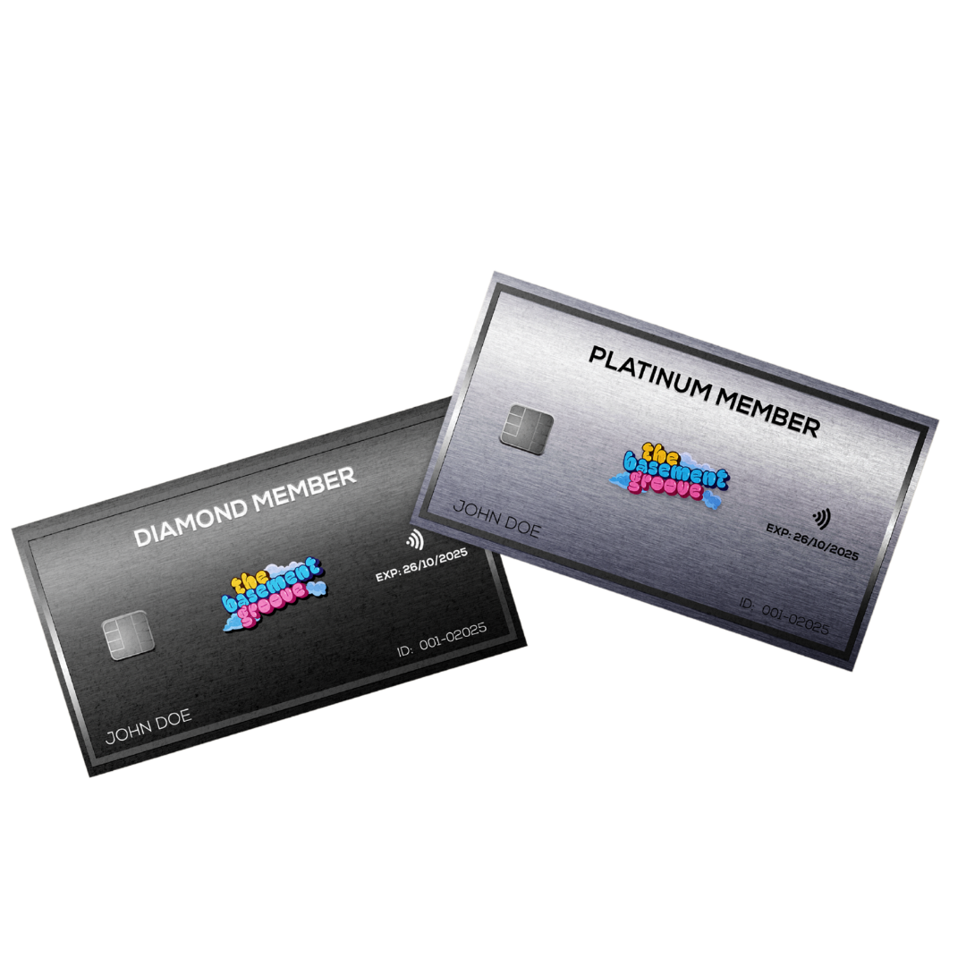 Platinum & Diamond VIP Membership Cards Introducing the ALL-NEW Platinum & Diamond VIP Membership Cards for The Basement Groove Festival & Events!Get ready to elevate your festival experience with exclusive perks designed to make every moment unforgettable. Whether you’re a Platinum VIP or a Diamond VIP, we’ve got something special for YOU!Platinum & Diamond VIP Membership CardsPLATINUM MEMBERSHIP PERKSADDITIONAL PERKS - 🤝 Referral Rewards – earn points or discounts for referring friends. 📱 Digital Perks – exclusive live streams, behind-the-scenes footage & artist interviews🎟 Free Entry to ALL Basement Groove exclusive events. Valid for our summer events. 🎫 Early Access to tickets for special performances & partner events. 🅿 Free Parking or shuttle service to events. 🎁 10% Discount at The Basement Groove merch store. 🎉 Member-Only Contests for merch, backstage passes & more. 🔖 10% Off next year’s membership renewal